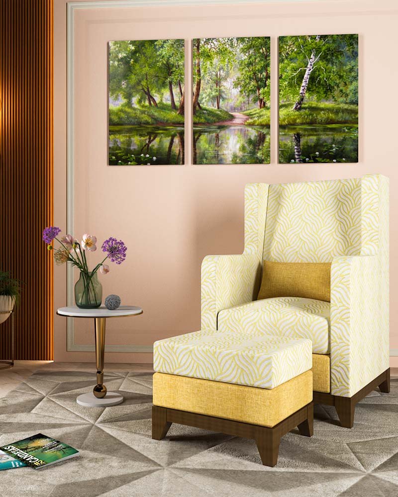 Wooden Lounge Chair-HSSC-334 With Footrest (Yellow)