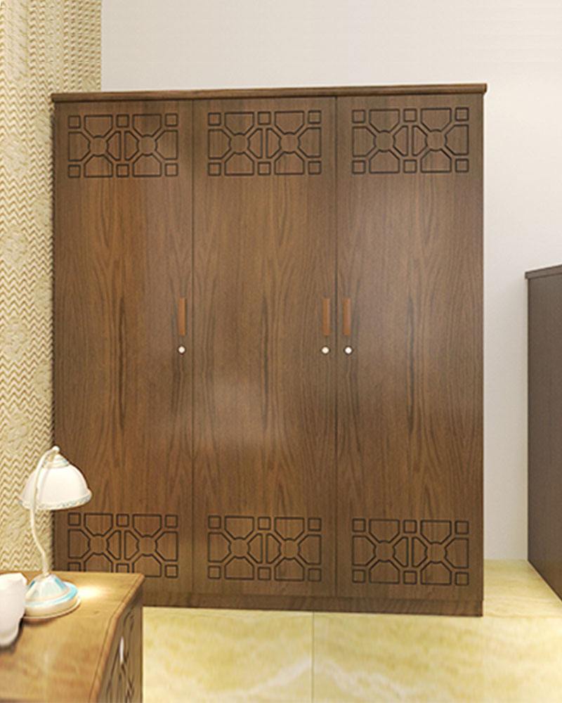 Classical era design cupboard is an excellent addition to the décor of your room and compliments well with the other furniture. This beautiful cupboard is crafted out of solid Red Oak wood, Veneered Red Oak along with processed wood for a durable and resilient structure and to add to the splendor of this product the wood is polished with antique lacquer. The doors of the cupboard are adorned with intricately carved patterns and is equipped with a lock system. Inside, the cupboard is divided into three compartments with multiple shelves, drawers and a hanging area.
